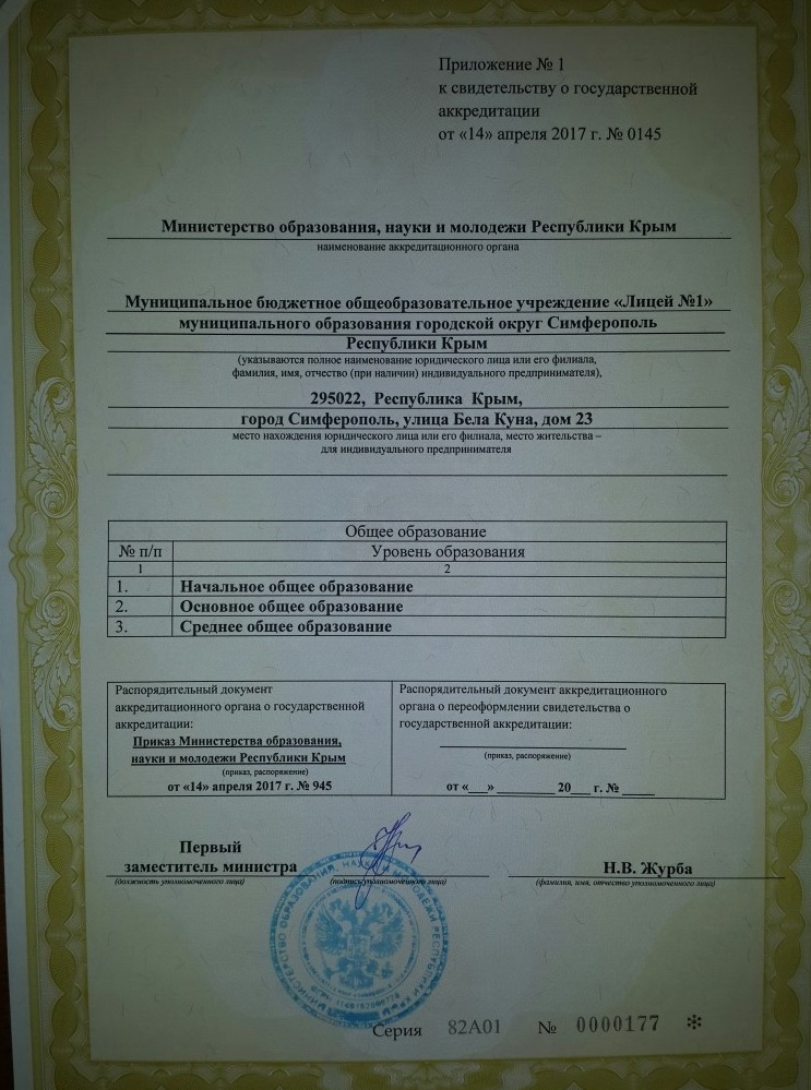 Муниципальное бюджетное общеобразовательное учреждение "Лицей №1" муниципального образования городской округ Симферополь Республики Крым