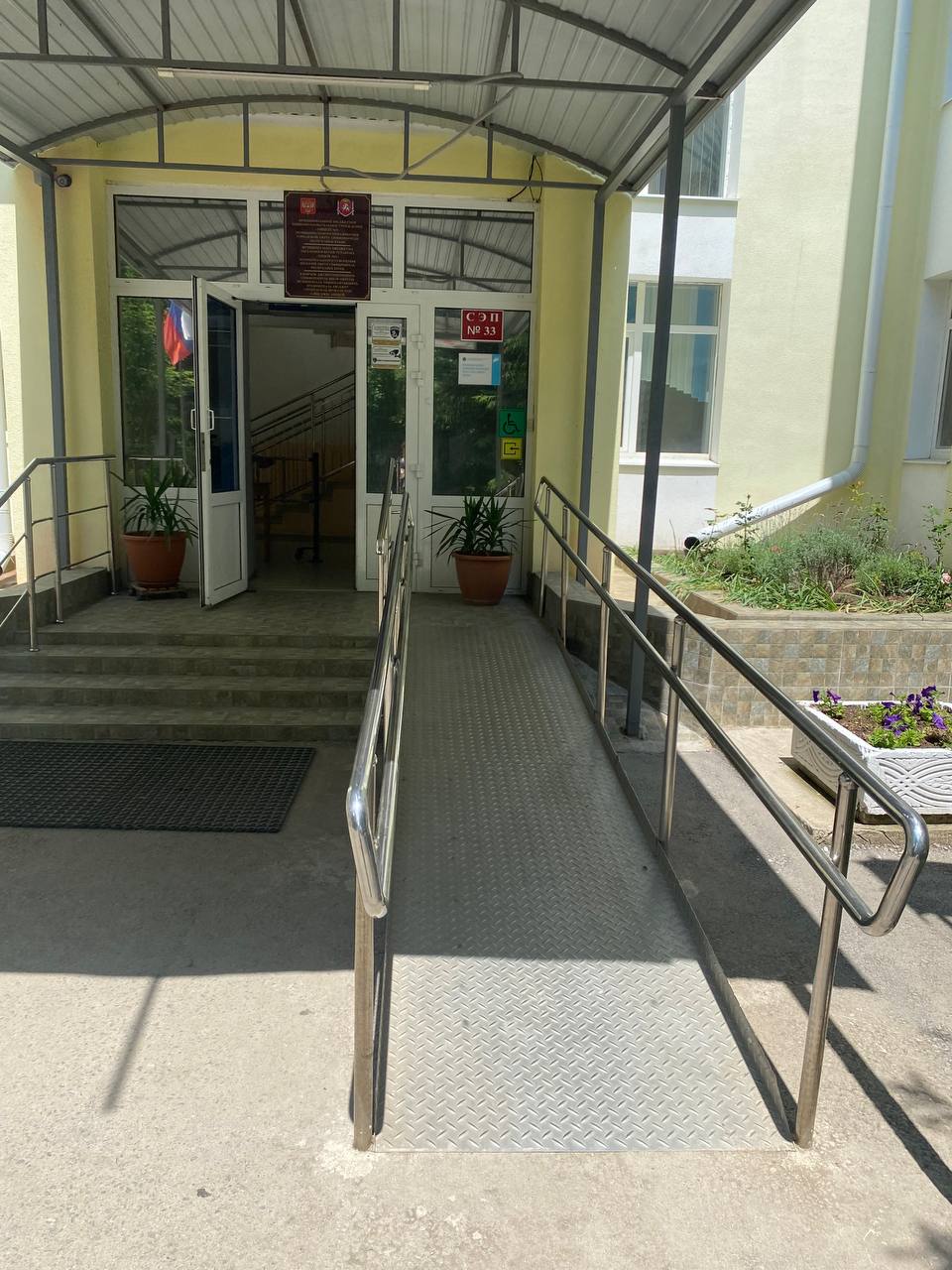 В МБОУ " Лицей № 1" для детей с ОВЗ и детей-инвалидов , для удобного самостоятельного передвижения оборудован пандус.